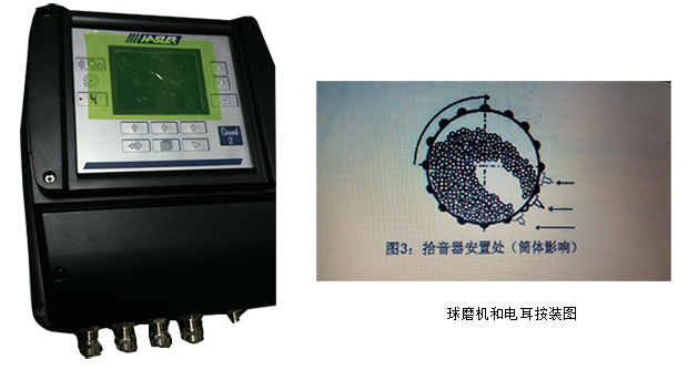 Sound 1電耳用于檢測球磨機噪音。球磨機噪音強弱根據(jù)物料及球磨機裝料量而變化。電耳由高靈敏度傳聲器組成,它安裝在球磨室附近,接近鋼球的碰撞點部位。傳聲器的海綿保護層位于兩排螺栓之間,盡量靠近磨機殼體。后面4-5cm為傳聲器頭,由覆有薄的塑料膜細網(wǎng)絡(luò)的海綿層保護。因此,嵌在海綿層內(nèi)的傳聲器與廠區(qū)內(nèi)干擾噪音隔絕。保護網(wǎng)防止粉塵進入,因為粉塵堆積將影響電耳的靈敏度。